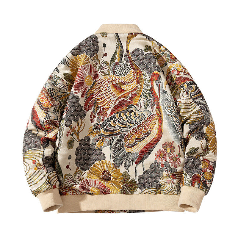 • Affirmez votre style avec ce sukajan Grues stylé, une veste élégante aux broderies raffinées qui symbolisent grâce, longévité et tradition japonaise.